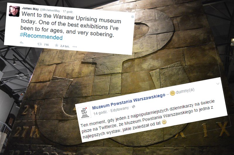 „Odwiedziłem dziś Muzeum Powstania Warszawskiego” – pisze James May na swoim profilu na Twitterze – „To jedna z najlepszych wystaw, na jakich byłem od lat i bardzo trzeźwiąca”. Dziennikarz dodał też hashtag #Recommended, by w ten sposób polecić Muzeum innym.