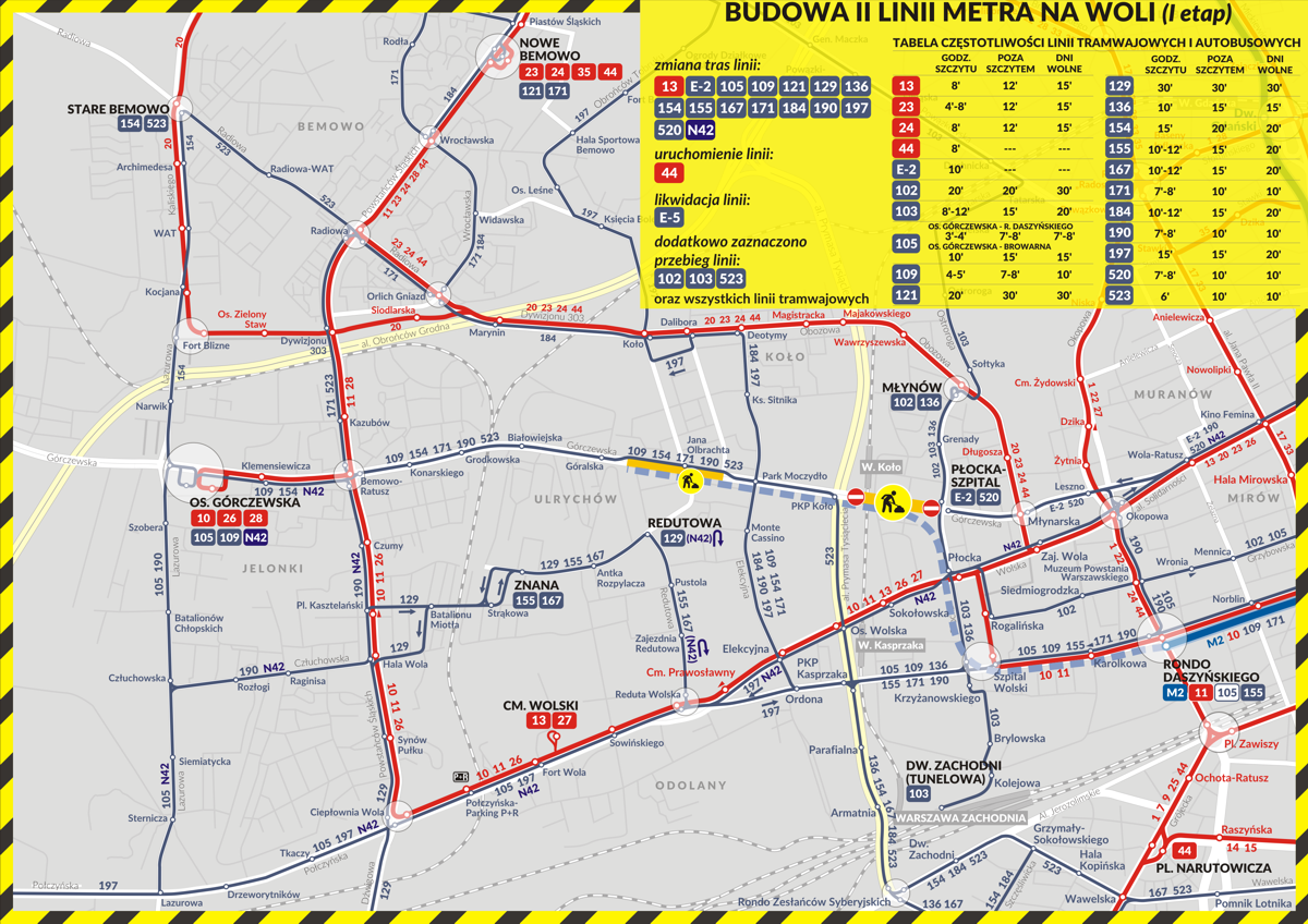 Dziś wieczorem zaczną się utrudnienia na Woli i zostanie wdrożona nowa organizacja ruchu. Place budowy dwóch stacji będą na ul. Górczewskiej dlatego około godz. 22.00 wykonawca zamknie ulicę.