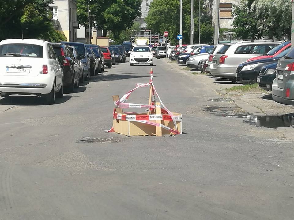 Dziura w jezdni na Grochowie straszy od kilku dni