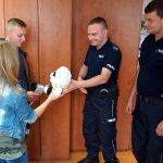 Szczęśliwi rodzice postanowili osobiście podziękować policjantom. Rodzinę przywitał asp.szt. Piotr Suplicki naczelnik sztabu legionowskiej komendy. Na spotkaniu obecni byli także sierz.szt. Grzegorz Kosałka i st. sierż. Marcin Kasiński, którzy od szczęśliwych rodziców odebrali pisemne podziękowania, a dla Patryka wręczyli pamiątkową maskotkę. Policjanci w imieniu wszystkich funkcjonariuszy dbających o bezpieczeństwo powiatu legionowskiego, serdecznie pogratulowali rodzicom i w miłej atmosferze jeszcze raz wspominali wydarzenia czerwcowej nocy.