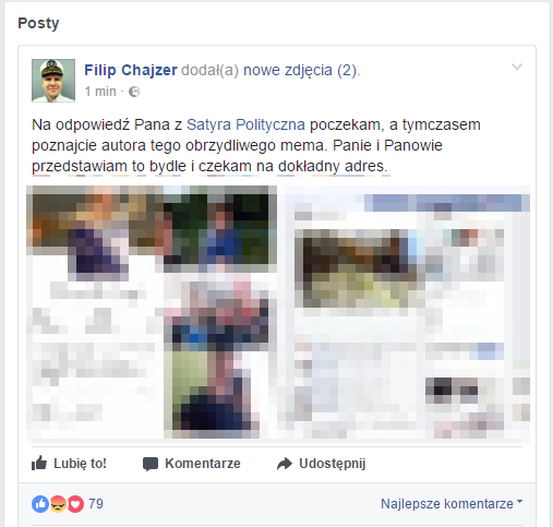 Wszystkich którzy poczuli się urażeni serdecznie przepraszamy. W tym również (i przede wszystkim) Pana Filipa Chajzera” – napisali twórcy fanapage’a.