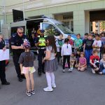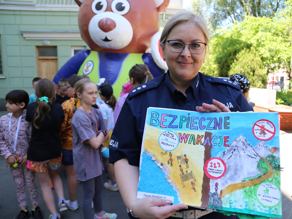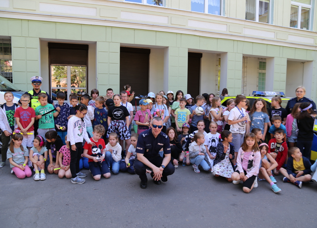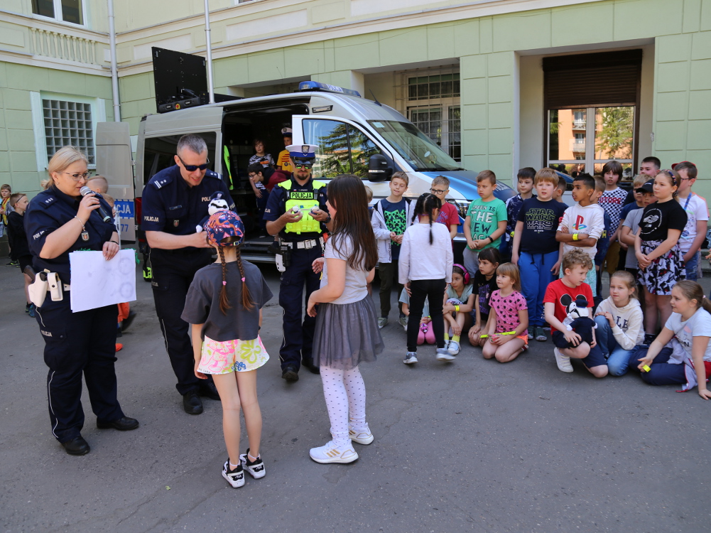 W trakcie festynu 50 uczniów klas IV pod okiem policjantów Wydziału Ruchu Drogowego przystąpiło do egzaminu na kartę rowerową. Policjanci skrupulatnie oceniali znajomość przepisów ruchu drogowego, znajomość znaków drogowych i umiejętności jazdy na rowerze. Pomimo zdenerwowania związanego ze sprawdzianem, zdający pamiętali o tym, aby założyć kaski ochronne na głowę i jak bezpiecznie poruszać się rowerem. Wszyscy uczestnicy zdali egzamin. Dodatkowo został zorganizowany konkurs na najlepszy rysunek związany z bezpieczeństwem w codziennym życiu. Zwycięzcy otrzymali pamiątkowe upominki, promujące fundusze europejskie. Funkcjonariusze podsumowali jak bezpiecznie zachować się na drodze. Przypomnieli również podstawowe zasady dotyczące kontaktów z osobami nieznajomymi, jak zachować się w przypadku zgubienia się oraz bezpieczeństwa w czasie wakacji. Policjanci opowiadali także o swojej służbie i chętnie odpowiadali na liczne pytania zadawane przez dzieci.