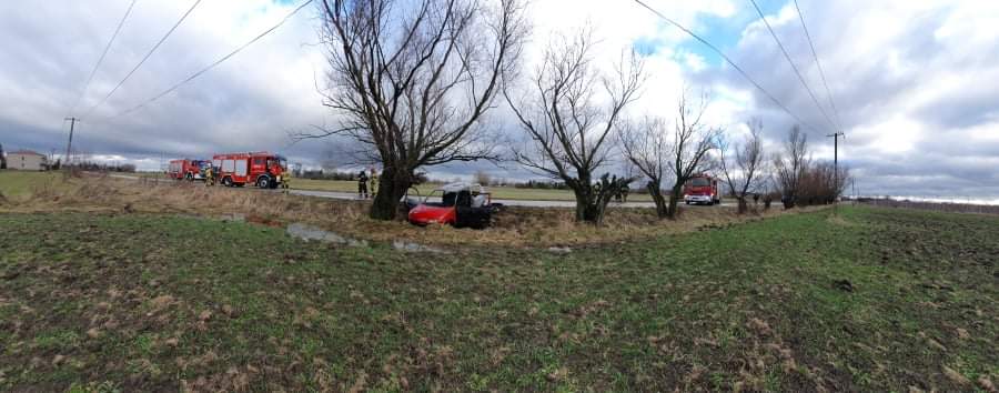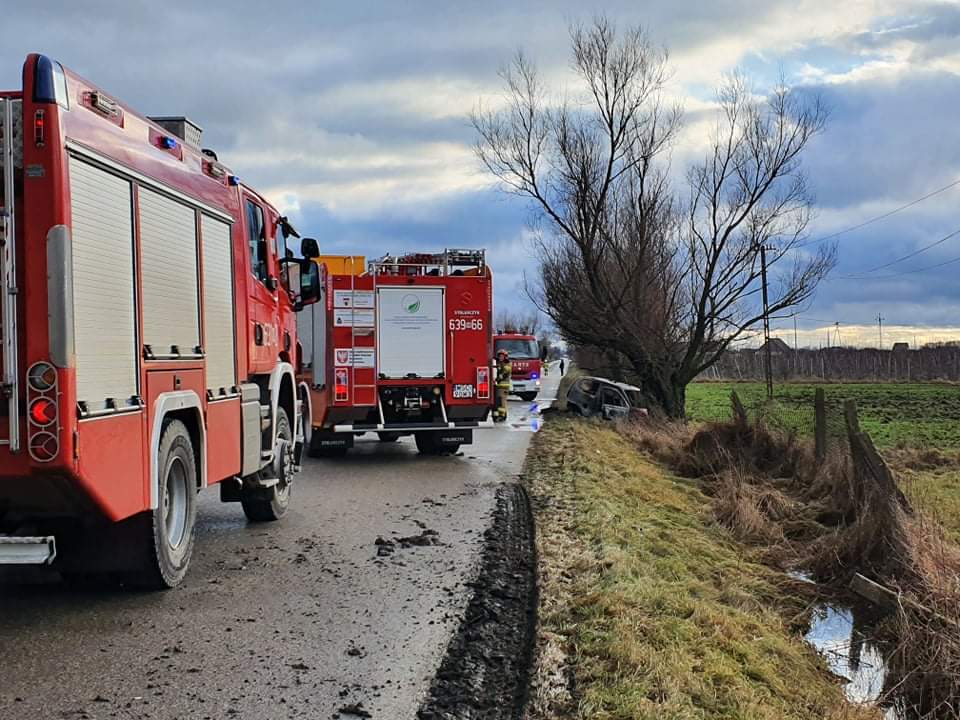Fiat seicento wjechał w drzewo i stanął w ogniu. Kierowca spłonął w pojeździe