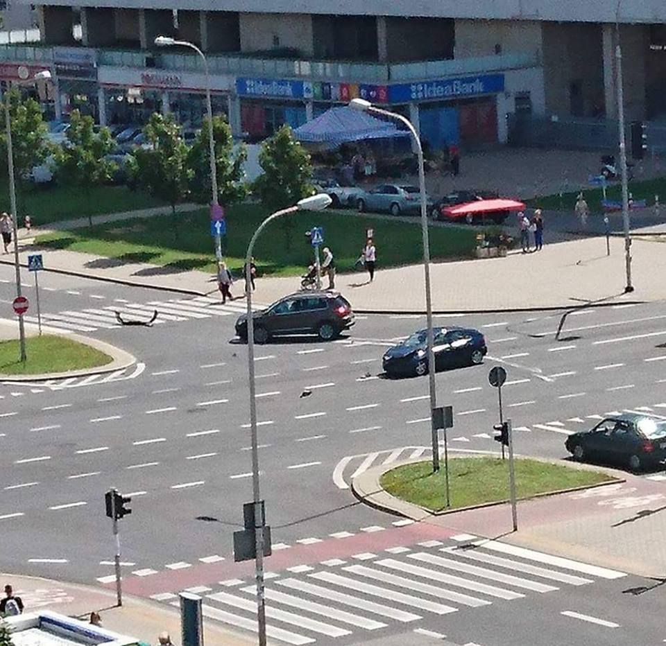 Na Fieldorfa doszło do kolizji dwóch samochodów. Po zdarzeniu jeden z kierowców „zagapił” się na wypadek i potrącił pieszą na pasach. Na szczęście jechał z nieduża prędkością. Zdjęcia opublikował fanpage Praga Południe na Sygnale.