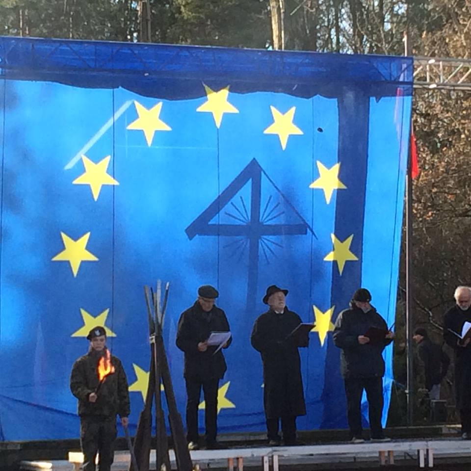 Flaga UE zasłoniła pomnik poległych o Olszynkę Grochowską. Grupa rekonstrukcyjna odmówiła współpracy. Tak wyglądały tegoroczne obchody