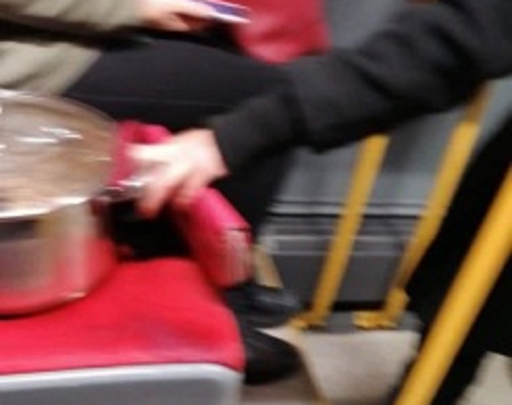 Na przystanek, w kierunku os. Górczewska, podjeżdża autobus o numerze taborowym 2217, obsługujący tego dnia linię numer 105. Żółto-czerwony Mercedes dzielnie pokonuje kolejne przystanki w drodze na Bemowo, wioząc niemałą rzeszę pasażerów. Wśród podróżujących – istny przekrój społeczny, mieszanka pokoleniowa i… bohaterka naszego artykułu – Dostojna Pasażerka w towarzystwie wielkiego garnka, obficie wypełnionego strawą. Garnek – rzecz jasna… i wielka, toteż spocząć musi. A że przeszkadza w sprawnej wymianie potoków pasażerskich? Garnek uczuć nie posiada, więc niewzruszenie kontynuował podróż na siedzisku. Więcej emocji towarzyszyło zaś nietuzinkowej bohaterce, która denerwowała się za każdym razem, gdy musiała przepuszczać napierający na nią tłum, pilnie strzegąc – niczym Cerber – swojego dobytku. Pragniemy serdecznie pozdrowić właścicielkę aluminiowego naczynia, wyrażając nadzieję, że kolejnym razem zachowa się roztropniej i nie ulokuje go na miejscu przeznaczonym dla innego pasażera. Bezpieczniej i mniej kłopotliwie byłoby przewozić tego typu rzeczy w torbie. Podróżnej, podręcznej, na kółkach lub bez – wedle uznania! Zdjęcie nadesłała czytelniczka portalu, Pani Angelika.