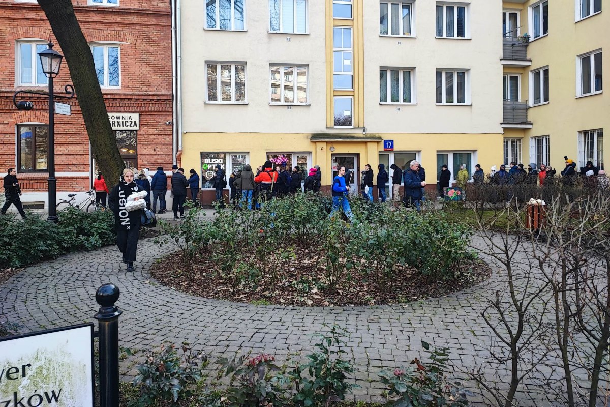 Jak dowiedzieliśmy się najwytrwalsi stoją tu już od samego rana. Kto stanął po 7 rano, ma szansę odebrać pączki teraz. Osoby stojące na początku kolejki mówią, że dostanie się na jej początek zajęło im 4,5 godziny.