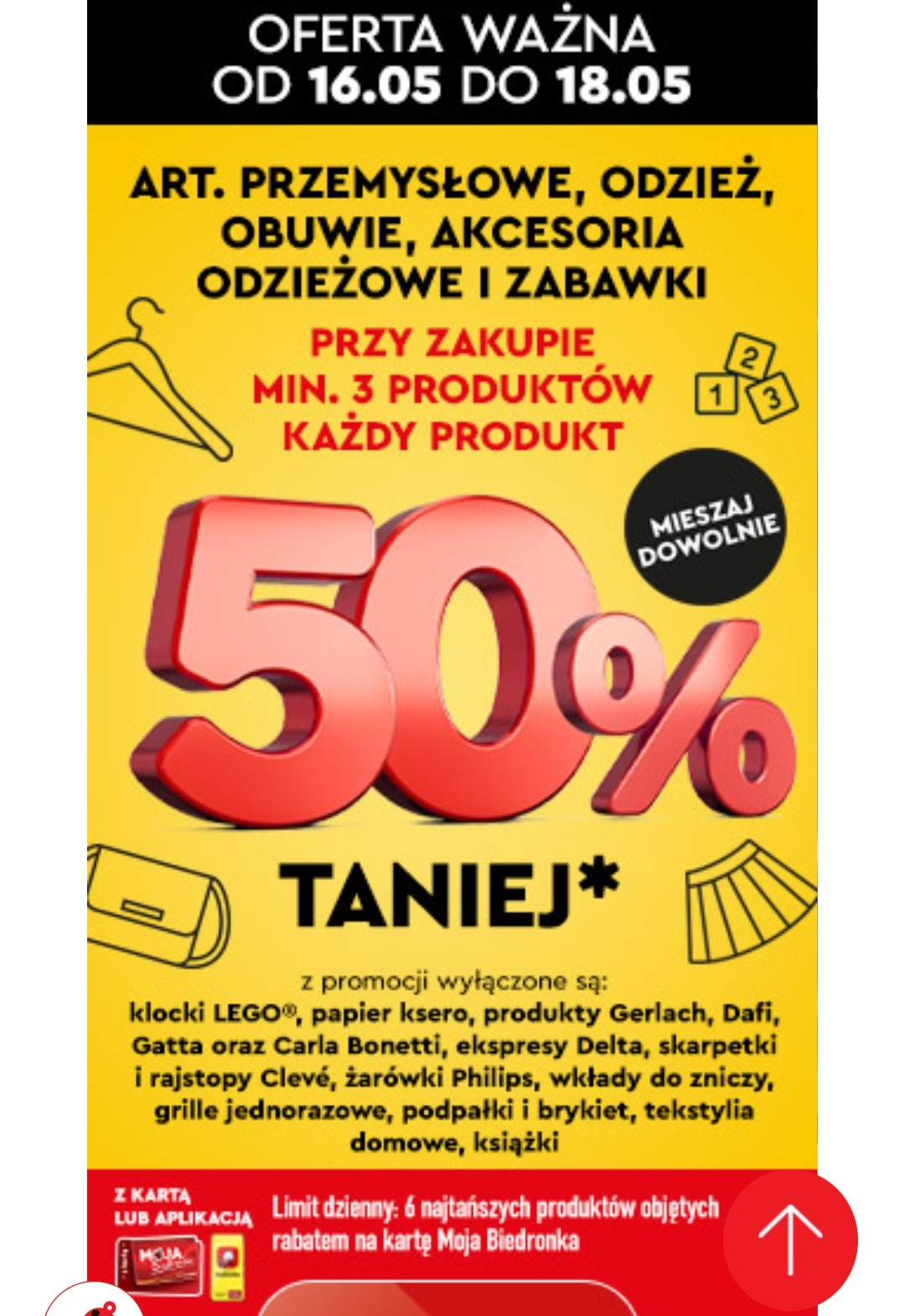 Sieć sklepów Biedronka zaskoczyła klientów ogłaszając gigantyczną wyprzedaż, która obejmuje szeroki asortyment produktów przemysłowych, odzieżowych, obuwniczych, akcesoriów oraz zabawek. Promocja, która trwa od 16.05 do 18.05, oferuje aż 50% zniżki na każdy produkt przy zakupie minimum trzech produktów z różnych kategorii. Oferta przyciągnęła uwagę wielu kupujących, którzy tłumnie odwiedzają sklepy, aby skorzystać z atrakcyjnych obniżek.