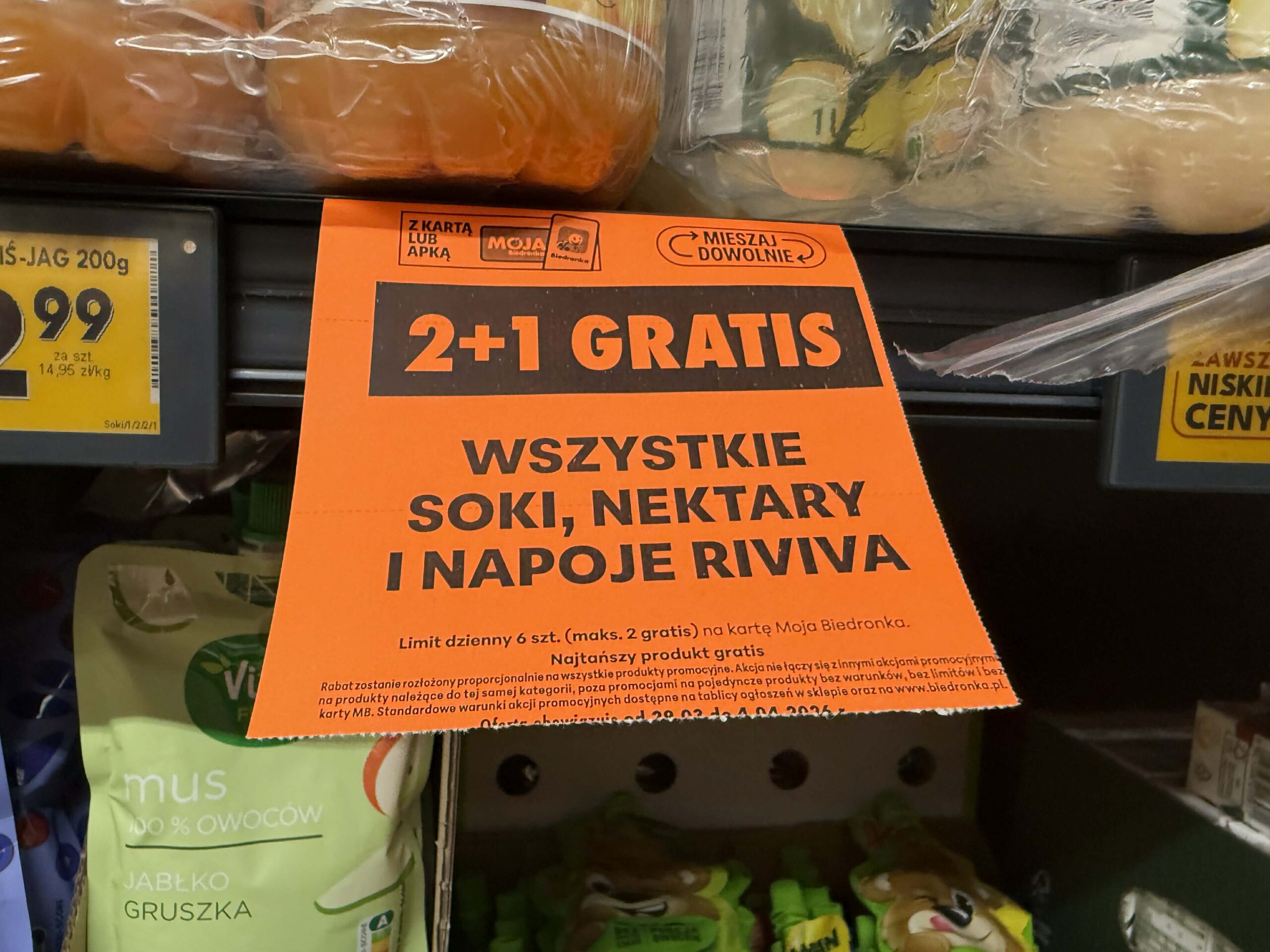 - promocje „2+1 gratis” na soki, nektary i napoje