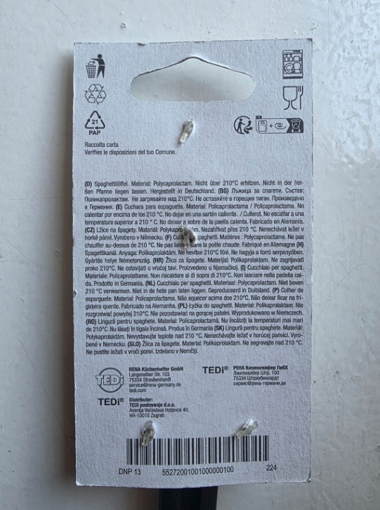 Ostrzeżenie dotyczy produktu o nazwie łyżka do spaghetti, oznaczonego kodem kreskowym DNP 13 55272001001000000100 224. Produkt pochodzi z Niemiec, a jego producentem jest RENA Küchenhelfer GmbH, z siedzibą przy Langenalber Straße 103, 75334 Straubenhardt. Dystrybucją na terenie Polski zajmuje się TEDi Sieć Handlowa Sp. z o.o., z siedzibą przy ul. 11 Listopada 11, 40-387 Katowice.