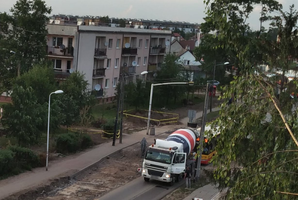 Na ulicy Głębockiej na wysokości szkoły podstawowej zepsuła się gruszka z betonem, Za pojazdem utknął autobus. Droga jest całkowicie nieprzejezdna.