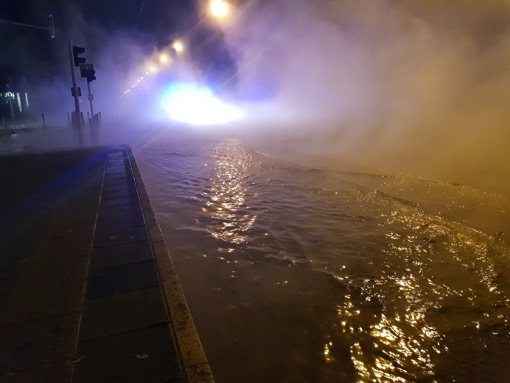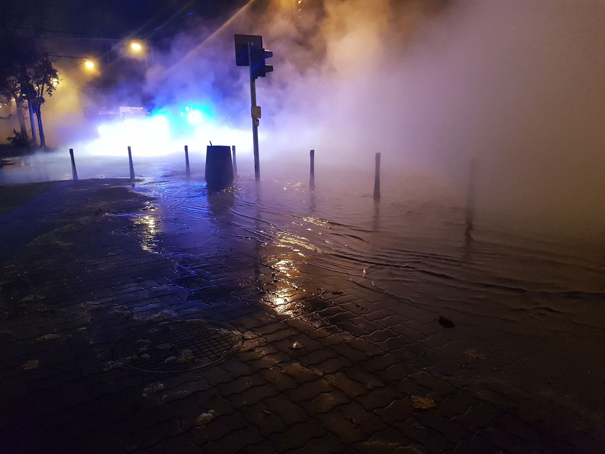 „Woda wylewa się na Aleję Waszyngtona. Różnica temperatur powoduje, że cała okolica zasnuta jest mgłą. Na miejscu jest Zarząd Ruchu, policja i Tramwaje Warszawskie. Pracują też służby miejskie. Cała ulica jest zamknięta dla ruchu w obu kierunkach. Nie wiadomo do kiedy potrwa naprawa, ale działania dopiero się rozpoczęły”.