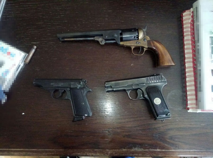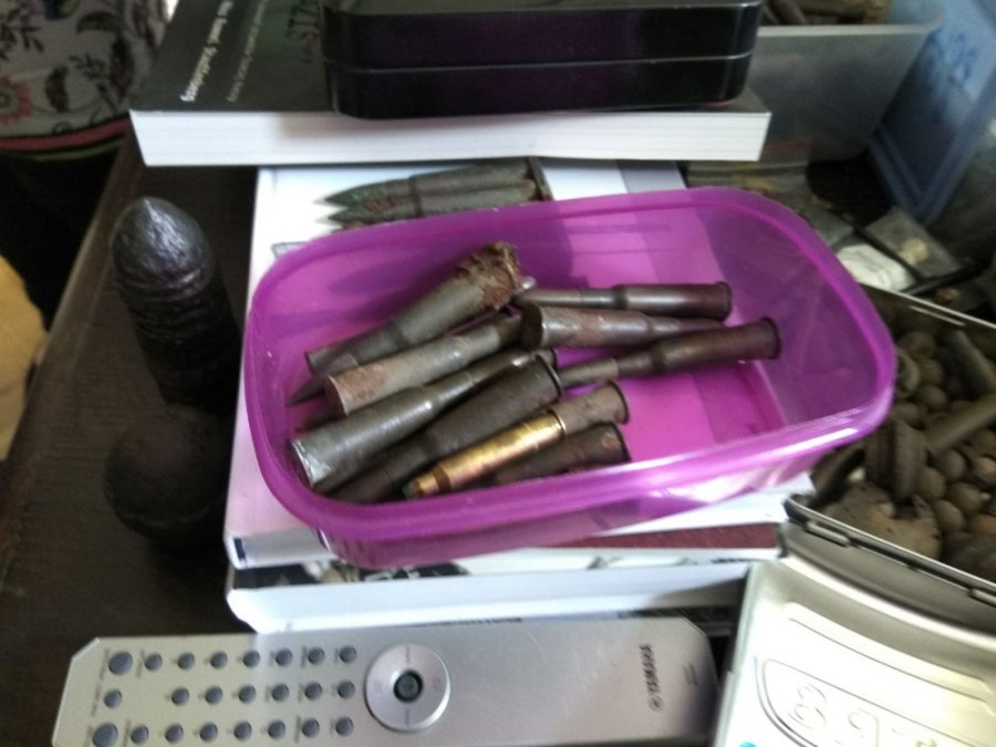 W mieszkaniu Tomasza G. kryminalni ujawnili rózne modele rewolwerów, amunicję różnego kalibru oraz granaty. Były to przedmioty stare, częściowo skorodowane. W zabezpieczaniu znalezionych militariów uczestniczyli, oprócz technika kryminalistyki, stołeczni policjanci rozpoznania pirotechnicznego oraz zespołu sapersko-minerskiego. Część przedmiotów została przekazana do dalszych badań.