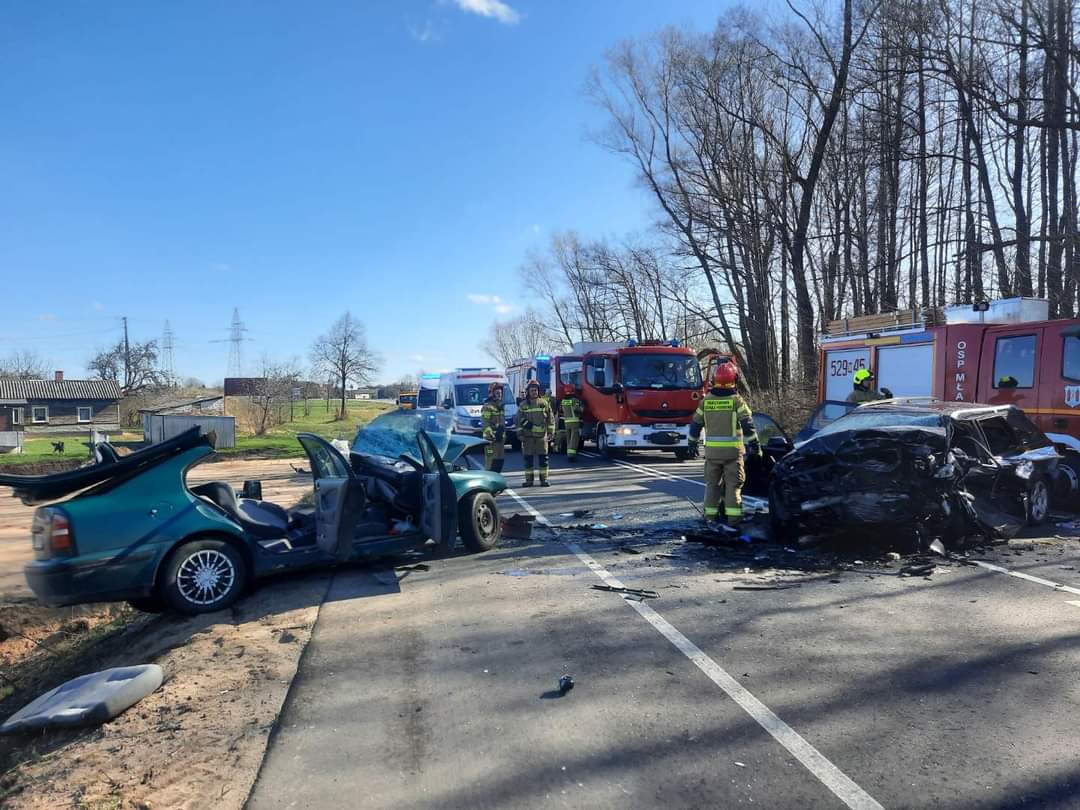 Zderzyły się tam czołowego dwa pojazdy osobowe- audi i skoda.