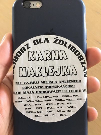 (zdjęcie nadesłane przez czytelnika, który jak najbardziej mieszka przy ul. Hozjusza, a jednak dostał naklejkę na swój samochód)” – napisał Żoliborz Oficerski