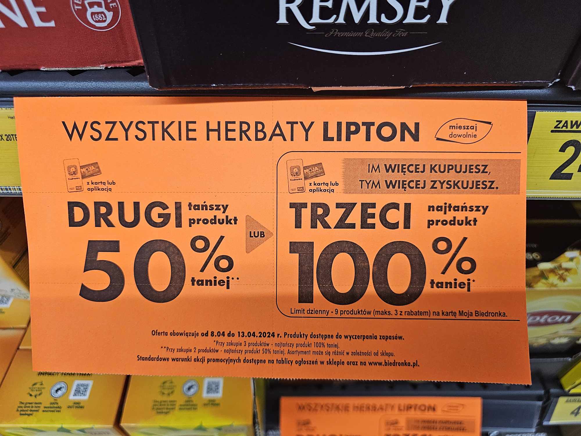 Sieć supermarketów ogłosiła gigantyczną promocję na wszystkie herbaty marki Lipton, obowiązującą od 8 do 13 kwietnia 2024 roku.