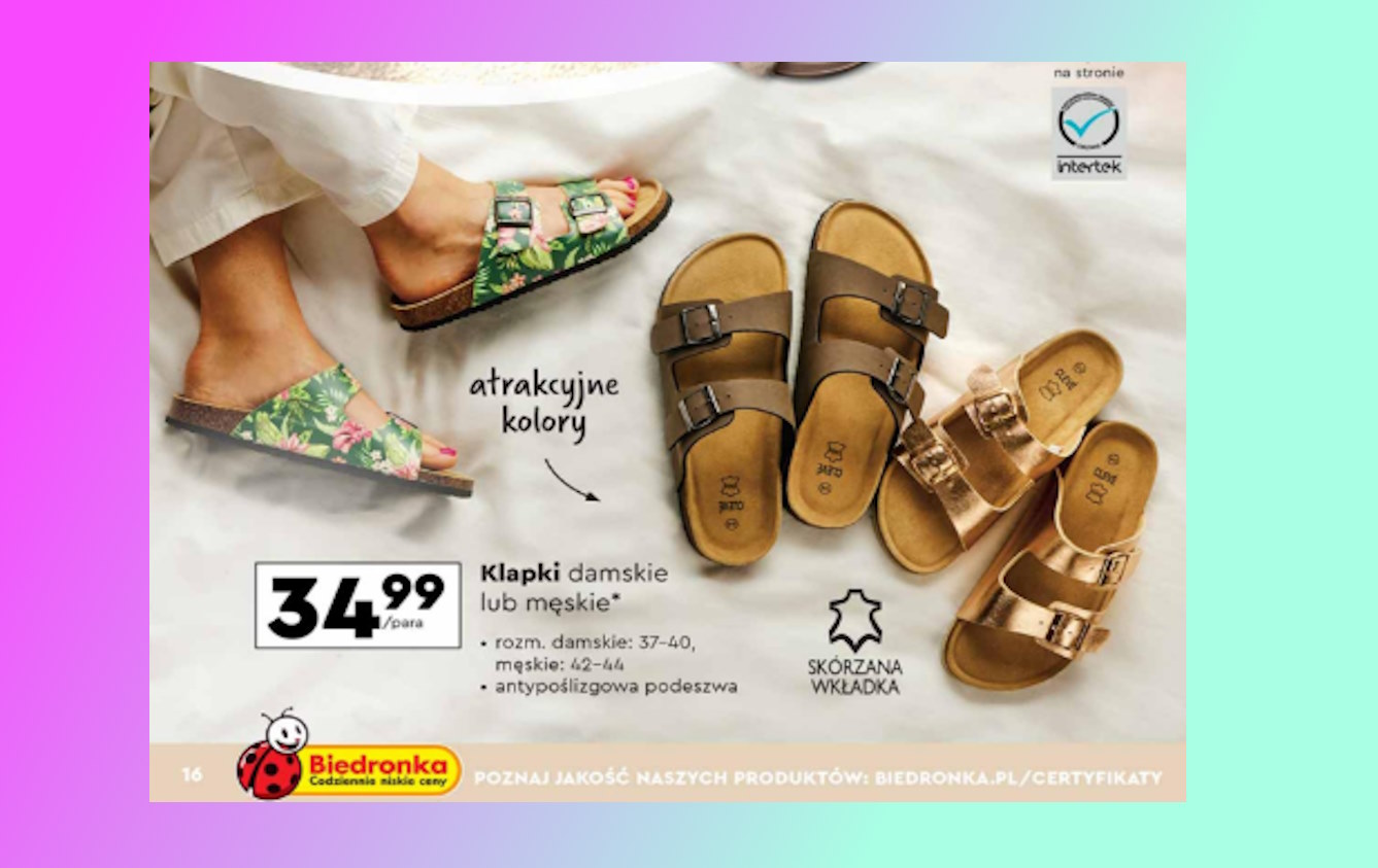 Nadchodzące lato to czas, kiedy chcemy wyglądać stylowo i czuć się komfortowo. A co jest nieodzownym elementem wakacyjnych stylizacji? Oczywiście klapki! Biedronka wychodzi naprzeciw oczekiwaniom klientów i wprowadza do swojej oferty najmodniejsze w tym sezonie klapki w wyjątkowo atrakcyjnej cenie.