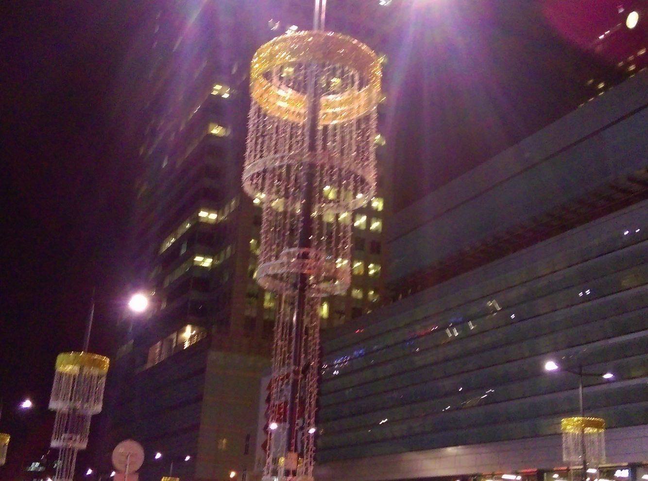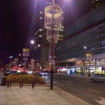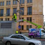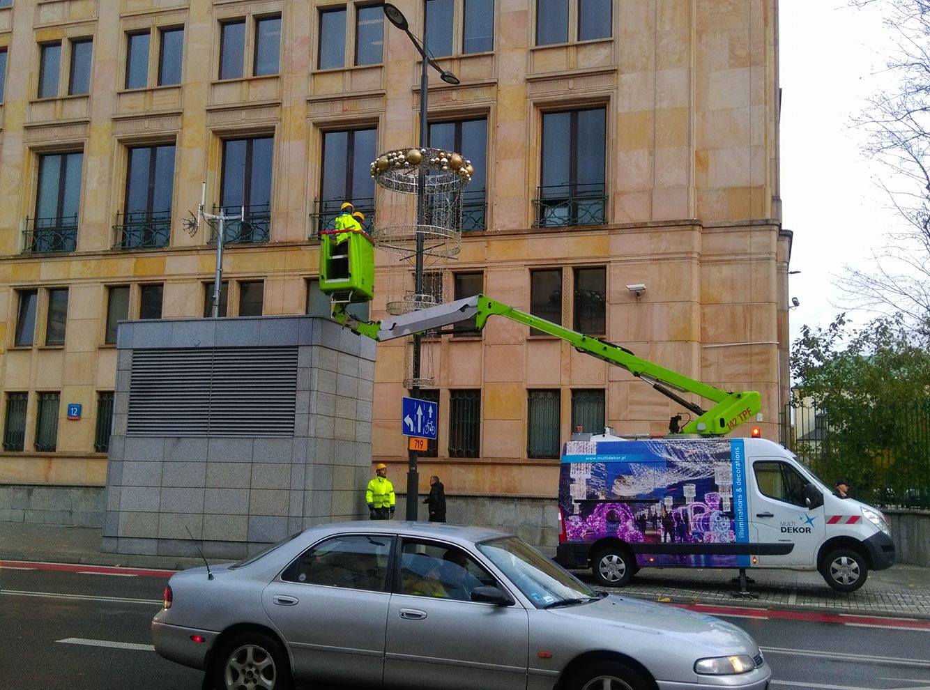 Na Świętokrzyskiej zamontowano iluminacje. Nie zawsze jeszcze są włączane, my jednak „załapaliśmy” się na moment, kiedy były aktywne. Montowanie świątecznych dekoracji trwa w najlepsze w całej stolicy.
