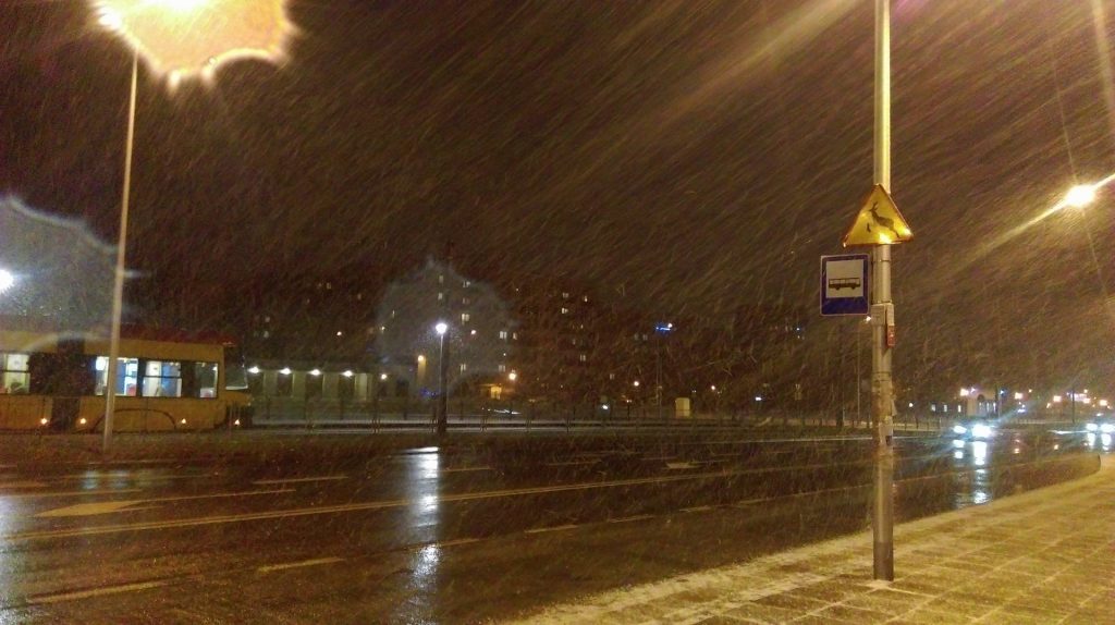 „Prognozuje się wystąpienie opadów śniegu o natężeniu umiarkowanym. Prognozowany przyrost pokrywy śnieżnej od 7 cm do 12 cm. Opadom będzie towarzyszył wiatr umiarkowany, okresami dość silny, w porywach do 70 km/h, który miejscami może powodować zawieje i zamiecie śnieżne” – pisze IMGW. Zdaniem instytutu taka pogoda może się utrzymać do jutra do godz. 11.00.