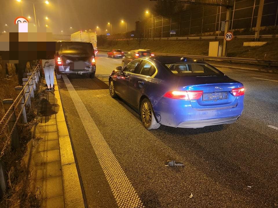 Jaguarem wjechali w mercedesa na S8. Młody kierowca nie ma prawa jazdy