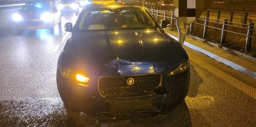 Na trasie S8 za Broniewskiego w kierunku Poznania doszło do zderzenia dwóch pojazdów jaguara z mercedesem. Jak się okazało młody kierowca z jaguara nie posiada uprawnień. Nikomu nic się nie stało.