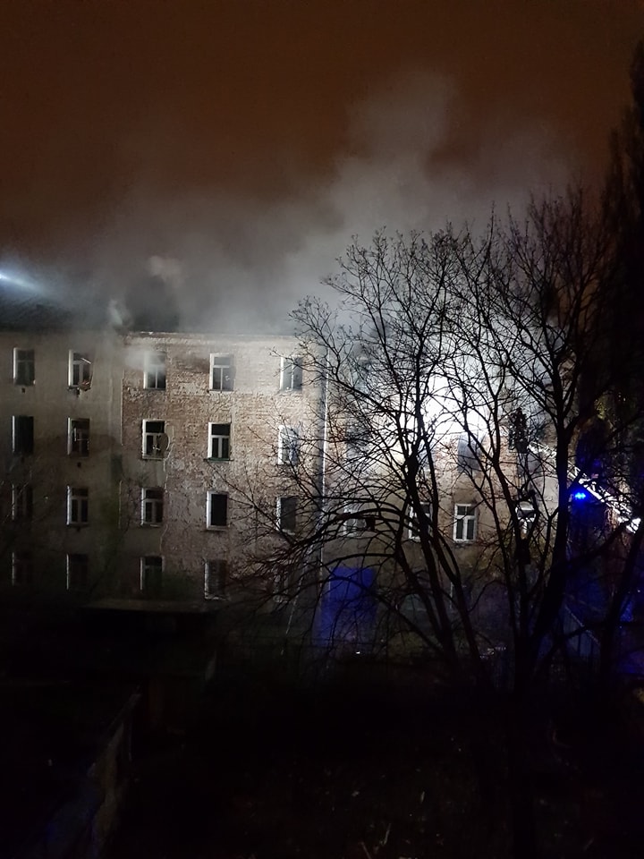Jak mówi nam Rzecznik Państwowej Straży Pożarnej. mł. bryg. Karol Kierzkowski, do niedawna na miejscu było obecnych jest siedem zastępów straży pożarnej i 35 strażaków. Dodaje, że pożar zaczął się na drugim piętrze, ale obecnie płonie również dach. Obecnie zwiększono siły i na miejscu jest już 16 zastępów straży pożarnej.