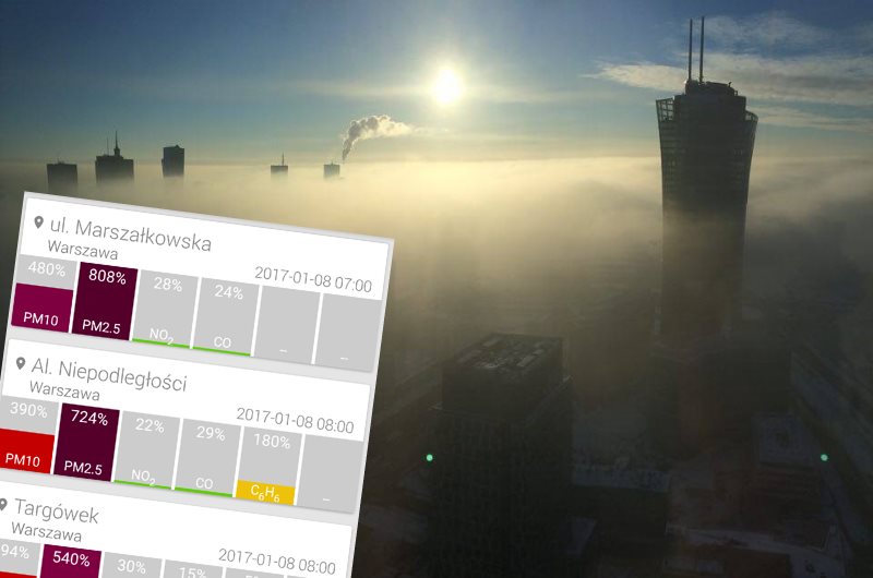 Ogromne stężenie rakotwórczych cząsteczek PM 10 oraz PM 2.5 obserwuje się w całej Warszawie oraz jej okolicach. Jeszcze wczoraj wieczorem stężenie w powietrzu było dwa razy mniejsze. Nie inaczej jest w pobliskich miejscowościach z tą różnicą, że tam zanieczyszczenie utrzymuje się od wczoraj na tym samym, wysokim poziomie.