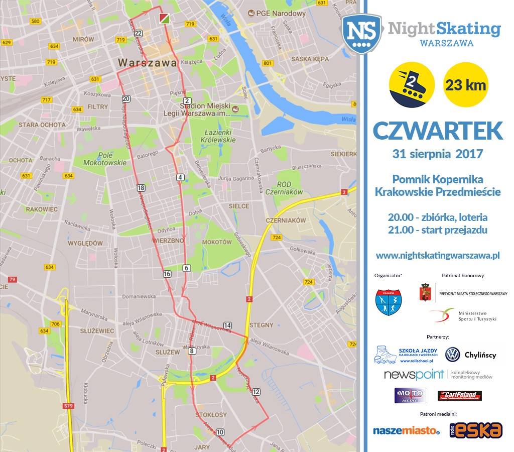 Na trasie przejazdu mogą występować chwilowe zatrzymania w ruchu pojazdów. Informacje o imprezie NightSkating Warszawa znajdują się na stronie http://nightskating.waw.pl.