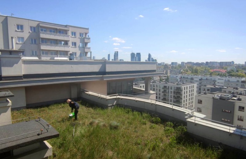 Przed ponad miesiącem właściciele apartamentu na dwunastym piętrze wieżowca przy ulicy Radziwie na Woli zauważyli kryjącą się w posadzonych tam gęstych krzewach i w bluszczu kaczkę krzyżówkę.