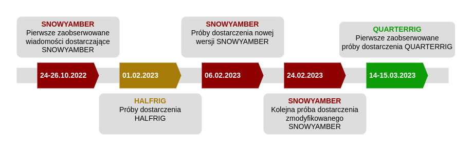 Pierwsza wersja narzędzia SNOWYAMBER została publicznie opisana m.in. przez Recorded Future8. Zmodyfikowana wersja narzędzia SNOWYAMBER, narzędzie HALFRIG oraz QUATERRIG nie były wcześniej opisane publicznie.
