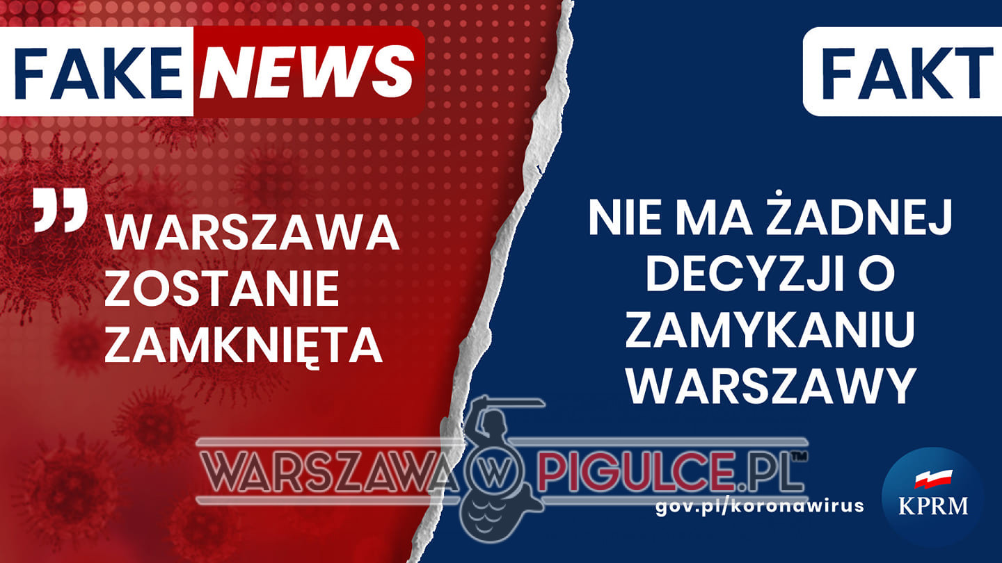 Kancelaria Premiera poinformowała, że „Nie ma żadnej decyzji o zamykaniu Warszawy”