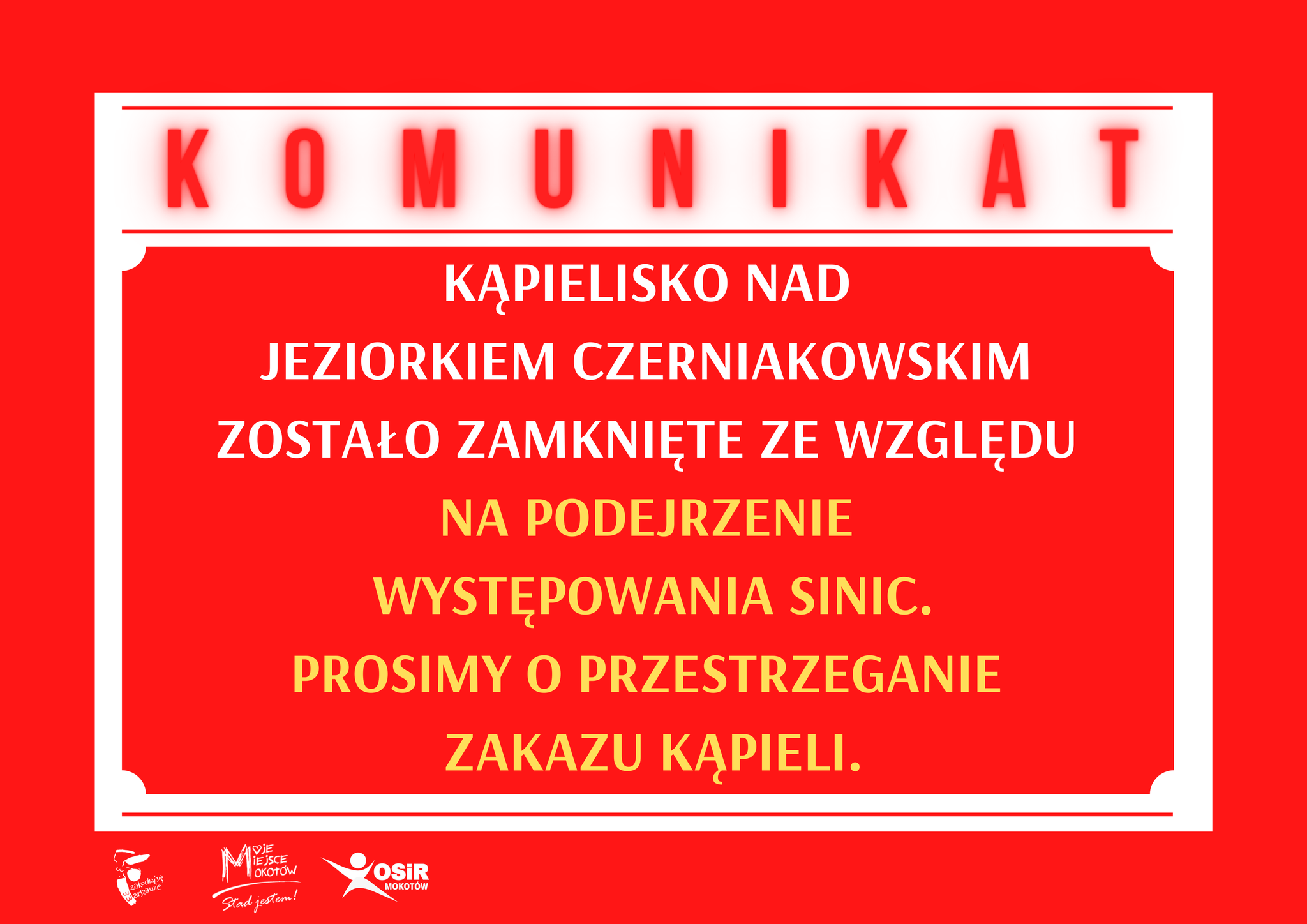 Do czasu potwierdzenia badaniami wystąpienie sinic kąpielisko zostaje zamknięte do odwołania.
