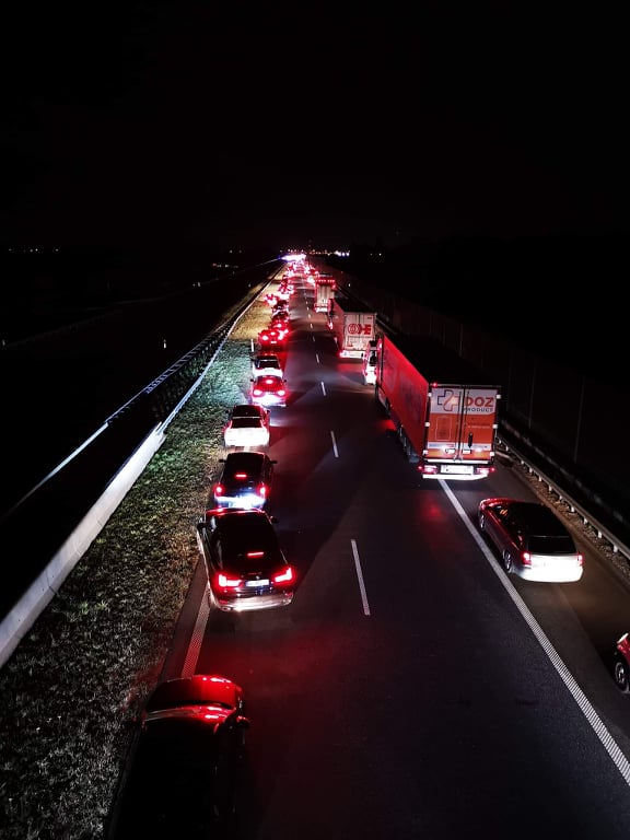 Zderzenie trzech samochodów. 20 kilometrów korka. Śmigłowiec LPR w akcji. Autostrada zablokowana