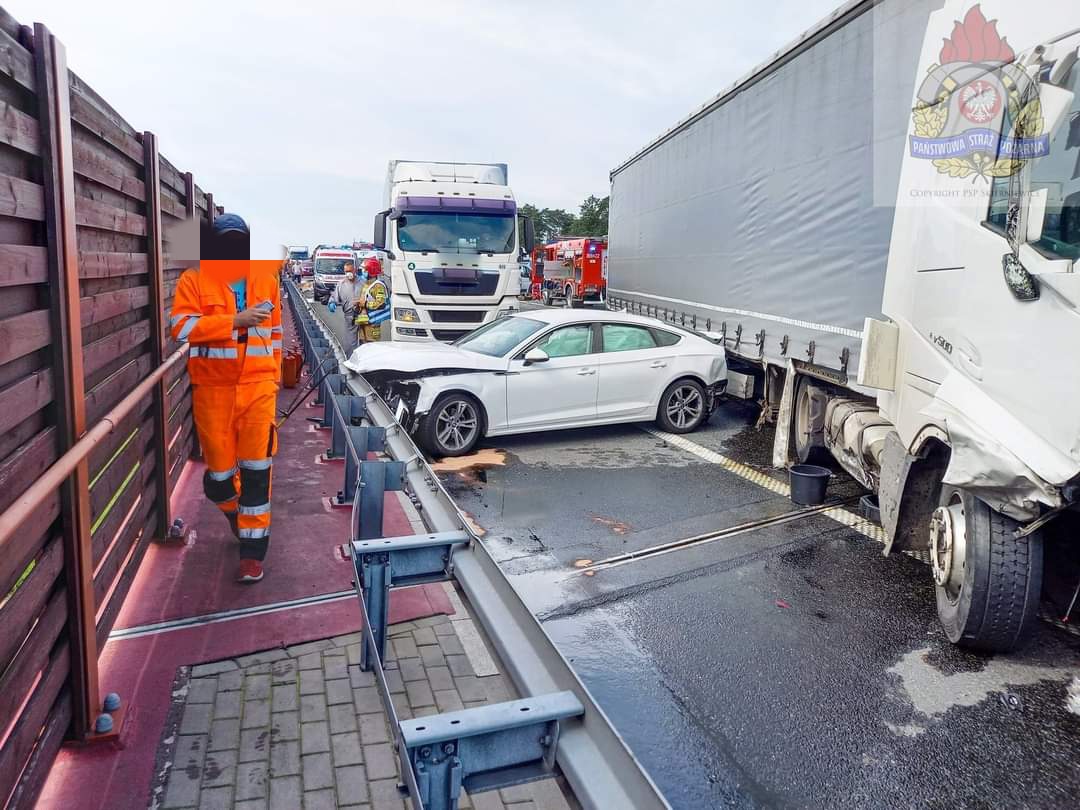 Karambol na autostradzie A2! Zmiażdżone auto. Droga zablokowana. Ranni w stanie ciężkim
