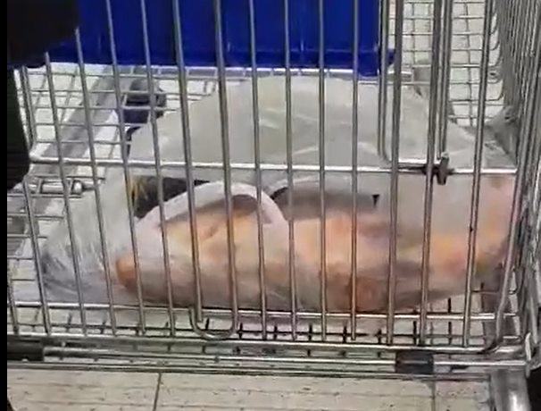 Nasza Czytelniczka przesłała nam film z jednego z hipermarketów na Bemowie. Widać na nim jak żywe karpie wożone są w folii w sklepowym wózku. Ryba próbuje rozpaczliwie łapać powietrze.
