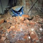 Kilka minut później patrol był na miejscu. Na ziemi leżały ogromne fragmenty muru z cegieł i kamieni, które oderwały się od zabytkowej konstrukcji. Już wcześniej zainstalowano na nim metalowe siatki, by spadające cegły nie zrobiły komuś krzywdy. Najwyraźniej nikt nie przewidział, że dojdzie do tak poważnego zdarzenia. Spadające na podwórko fragmenty gruzu zerwały metalowe zabezpieczenia oraz uszkodziły trzy samochody. Kilka stojących obok kontenerów na śmieci zostało doszczętnie zniszczonych.
