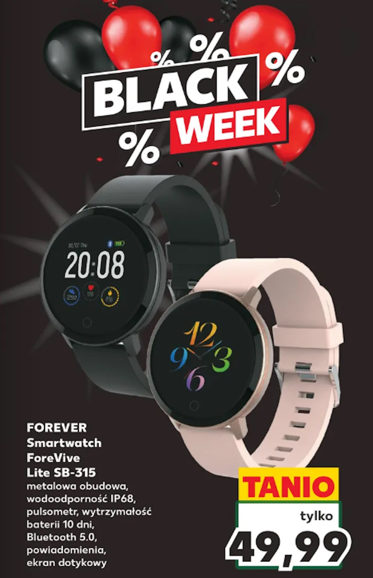 W ramach obchodów Black Week, Kaufland przygotował dla swoich klientów wyjątkową ofertę. Od czwartku, 23 listopada, w sieci sklepów Kaufland dostępny będzie smartwatch Forever Forevive Light SB 312. To nowoczesne urządzenie, wyposażone w metalową obudowę, wodoodporność, pulsometr, długotrwałą baterię i wiele innych funkcji, będzie oferowane w atrakcyjnej cenie.