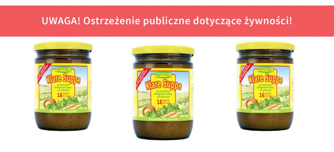 Wycofanie produktu pn. Rapunzel Klare Suppe 250 g z datą minimalnej trwałości 18.09.2020 ze względu na możliwość występowania fragmentów szkła – informuje Główny Inspektorat Sanitarny.