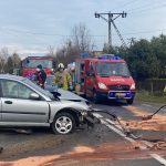 Kierowca bez prawa jazdy wjechał w ogrodzenie. Z pojazdu wypadł silnik