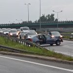 Kierowca bmw wjechał w bariery. Duże utrudnienia