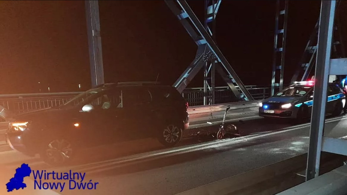 We wtorek (8.11) po godzinie 17 na moście im. Piłsudskiego w Nowym Dworze Mazowieckim, doszło do wypadku z udziałem samochodu Dacia i motoroweru Keeway. Kierujący jednośladem po zderzeniu odjechał na miejscu pozostawiając rannego pasażera.