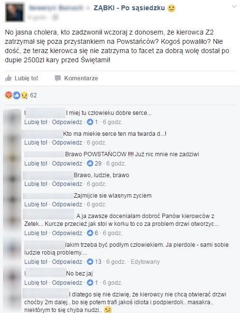 Kierowca chciał pomoc pasażerowi i zatrzymał się w Ząbkach poza przystankiem. Ktoś złożył donos. Teraz kierowca zapłaci wysoką karę. Ludzie są oburzeni i chcą się złożyć by pokryć sumę nałożoną na kierowcę…
