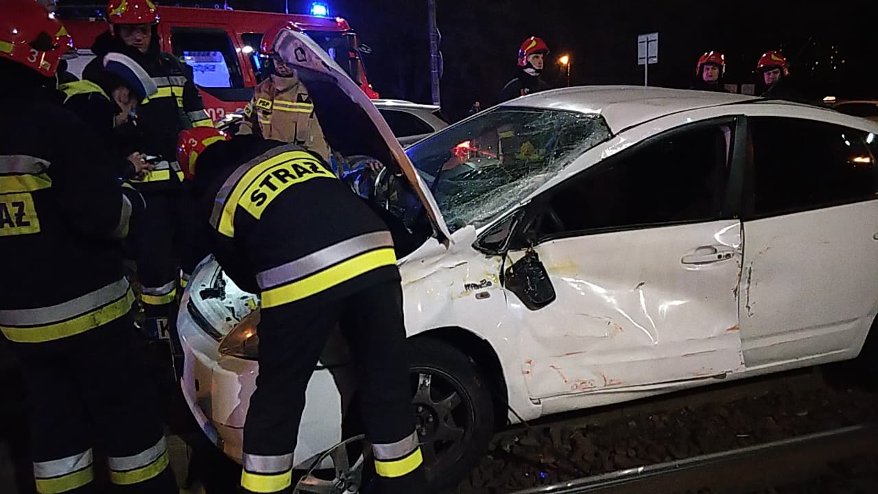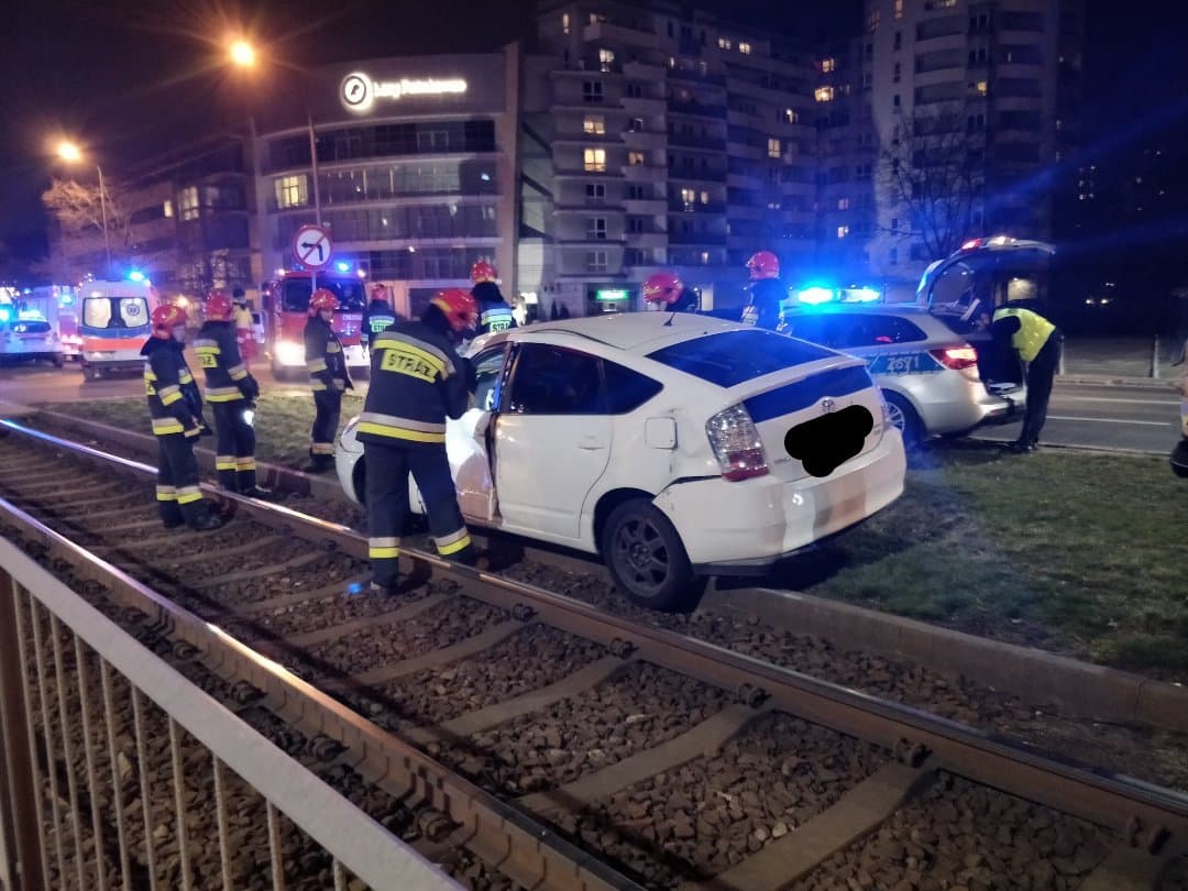Kierowca osobówki na litewskich blachach wjechał pod tramwaj na Ochocie! Jedna osoba ranna