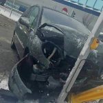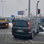 Po zderzeniu z przewozem osób, citroen wpadł na sygnalizator świetlny.