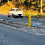 Na ulicy Płochocińskiej na warszawskiej Białołęce na wysokości PKP Żerań samochód osobowy marki Ford kierowany przez mężczyznę wjechał w znak drogowy i słupki.