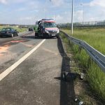 Na węźle Opacz kierująca Toyota nie dostosował prędkości do warunków panujących na drodze wi uderzyła w barierki.