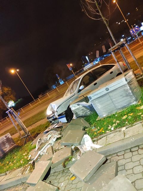 Kierujący renault wjechał w płyty chodnikowe. „Wydmuchał prawie 1,5 promila alkoholu”