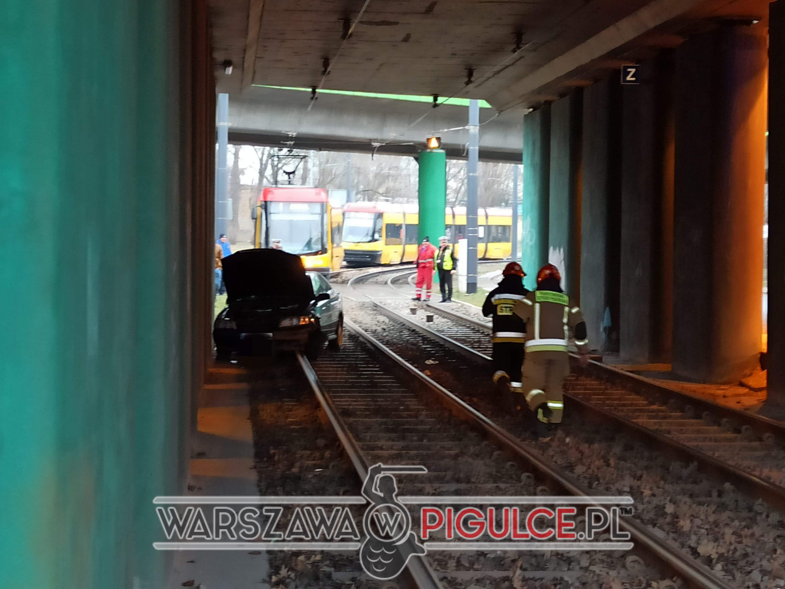 Kierujący volvo wjechał na tory przy rondzie Żaba. Ruch wstrzymany.