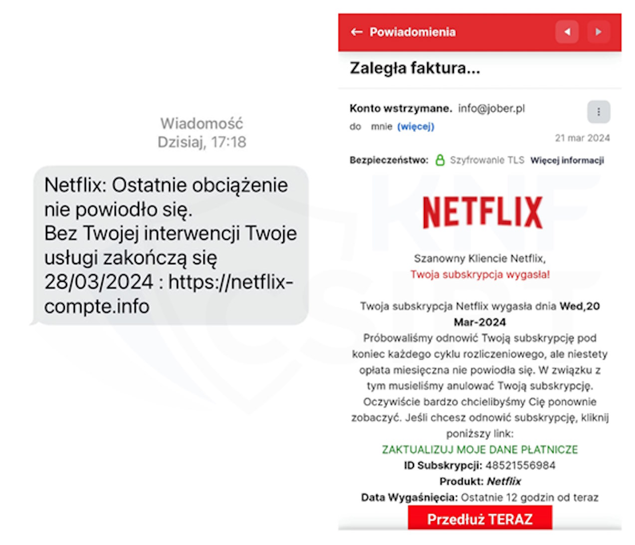 Oszuści przygotowali sprytne wiadomości podszywające się pod oficjalną komunikację Netflix i HBO. W treści znajdziemy informację o rzekomym wygaśnięciu subskrypcji i konieczności podjęcia natychmiastowych działań. Całość wygląda wiarygodnie, łącznie z logo platform i profesjonalną szatą graficzną.