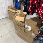 Obsługa nie nadąża ze sprzątaniem, bo chętnych do kasy jest tak dużo, że non stop otwarte być muszą wszystkie dostępne. Kapcie i torby prezentowe zalegają więc na środku przejścia zachęcając kolejnych klientów do zdeptania, zabawki walają się pomiędzy ubraniami, a puste torby po wypakowanych i zostawionych produktach leżą przy produktach.